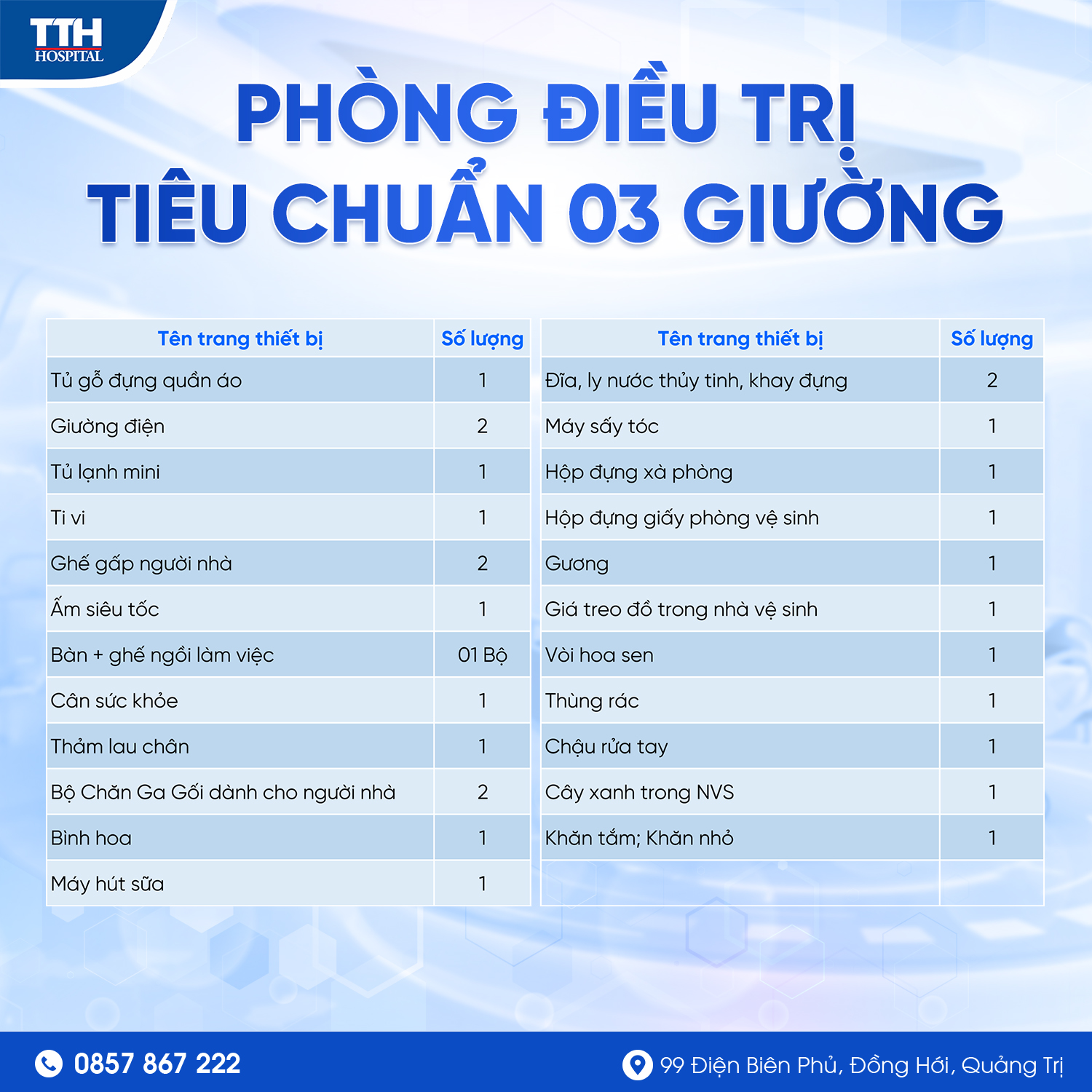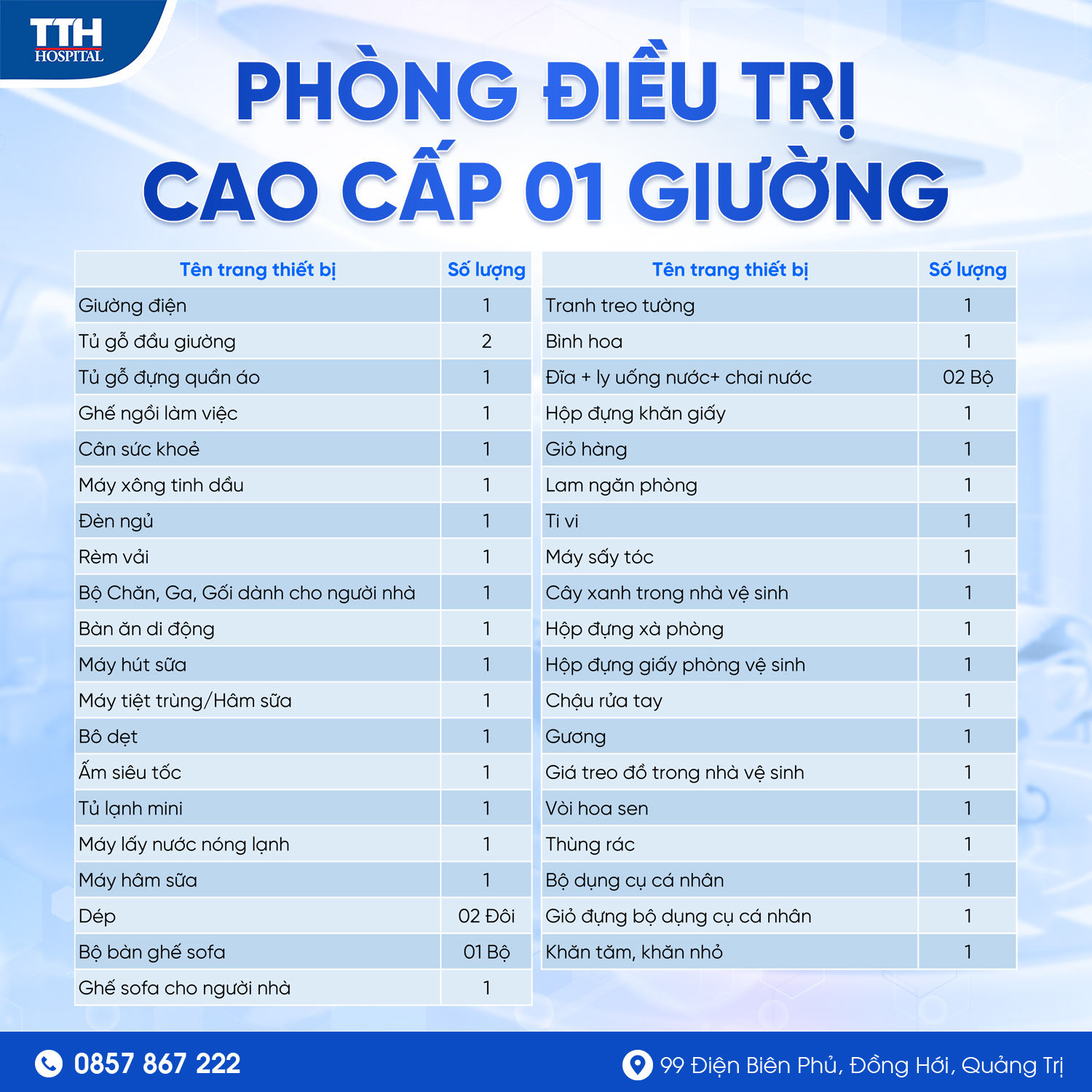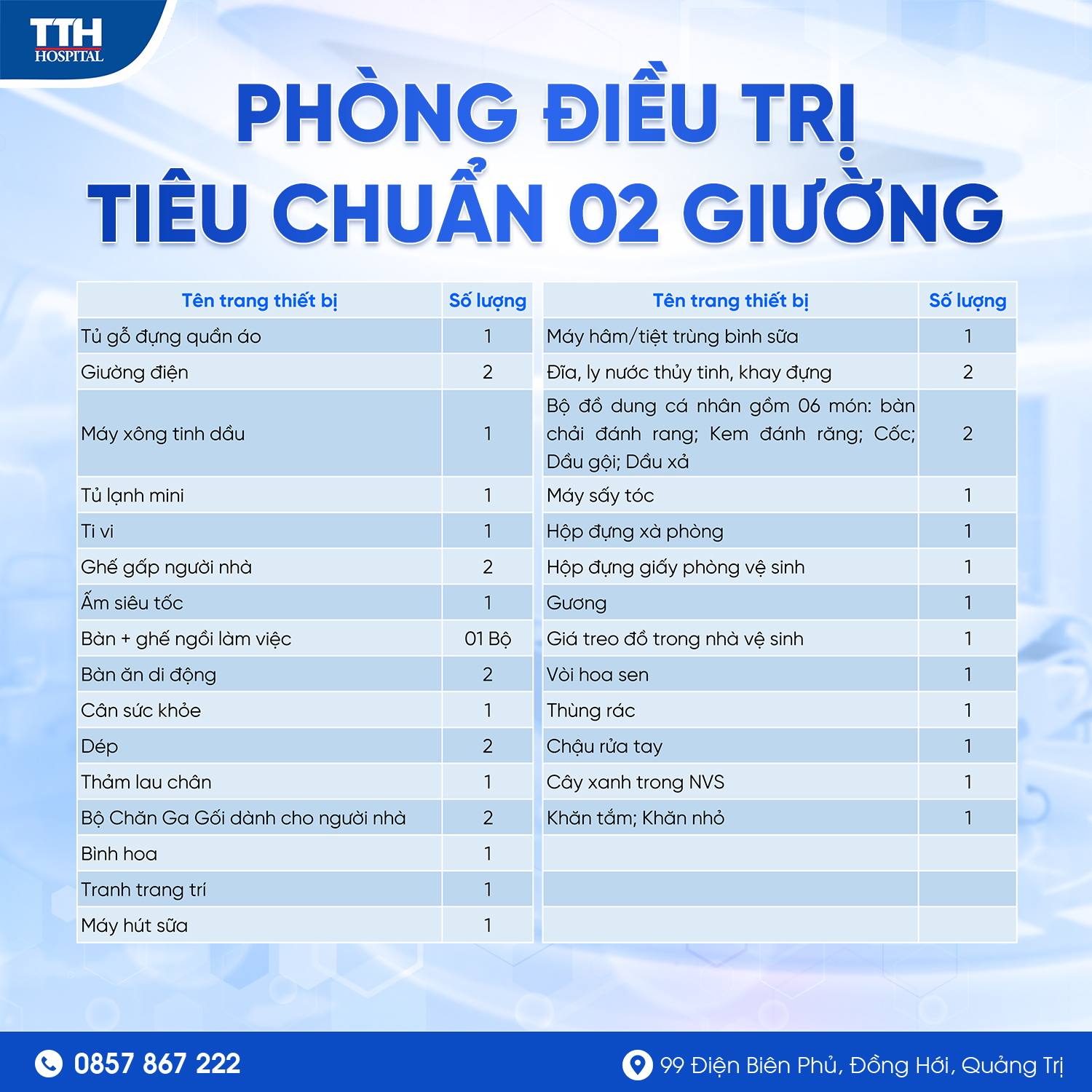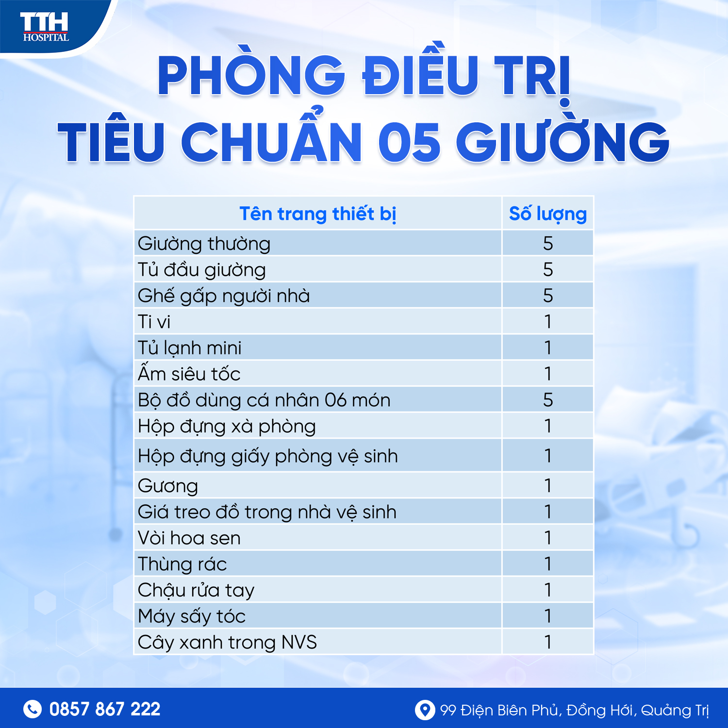 Tiêu chuẩn buồng bệnh nội trú tại Bệnh Viện TTH Quảng Bình