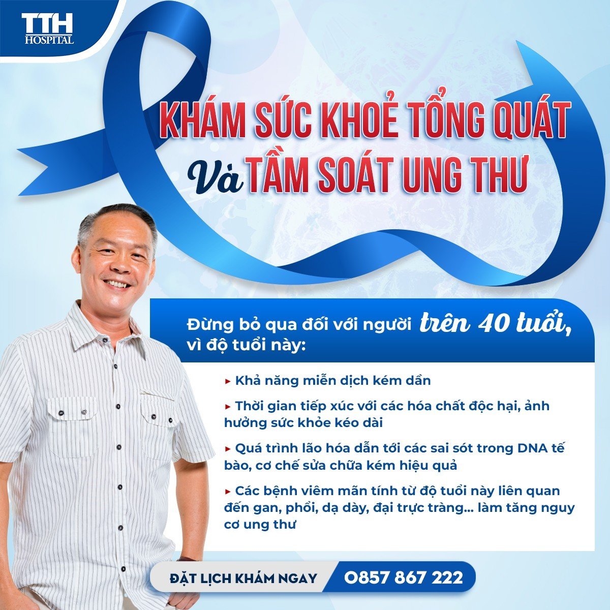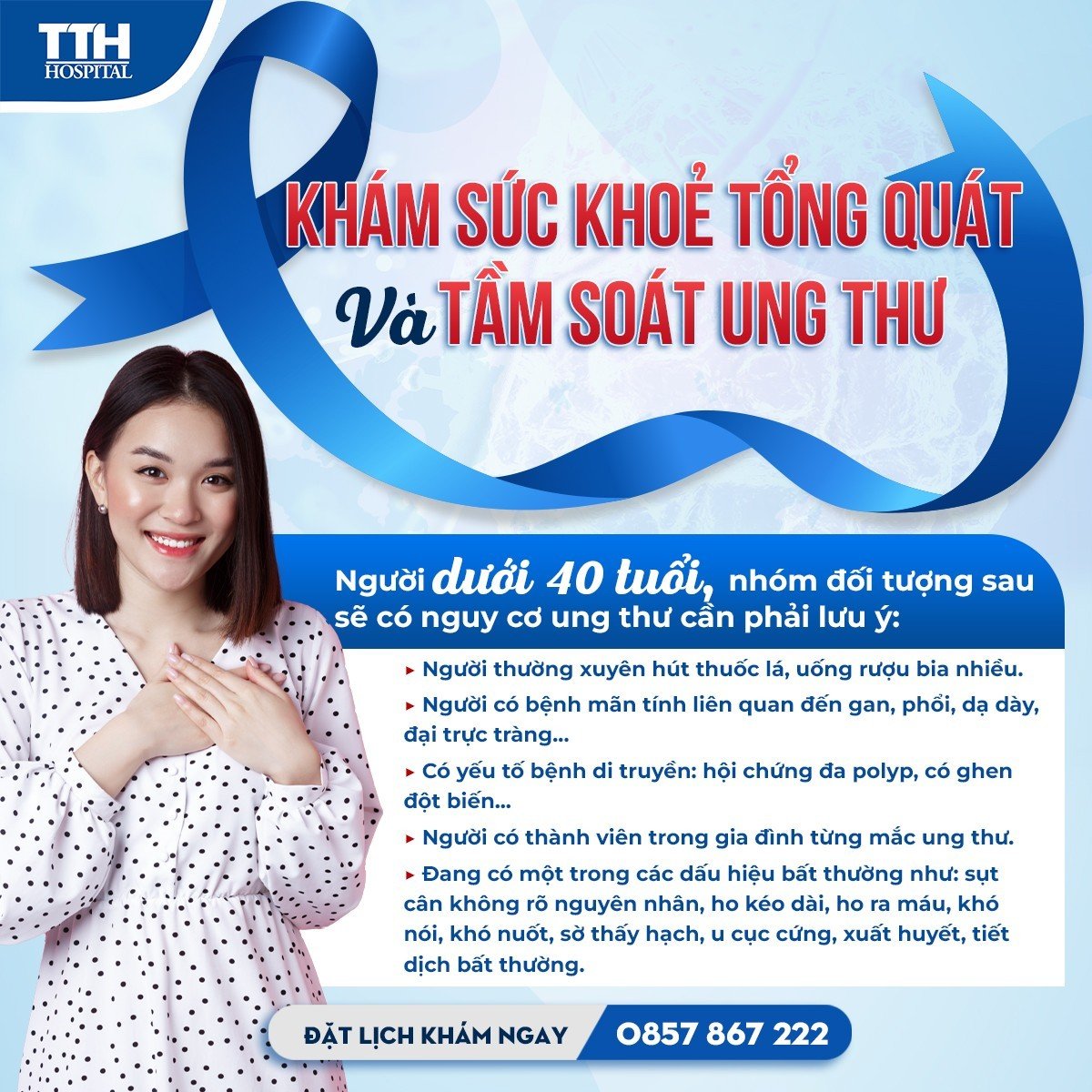 Để biết thêm thông tin chi tiết các GÓI KHÁM SỨC KHỎE ĐỊNH KỲ VÀ PHÁT HIỆN UNG THƯ tại Bệnh viện Đa khoa TTH Quảng Bình, quý khách vui lòng liên hệ với chúng tôi theo hotline 0857 867 222 hoặc nhắn tin Fanpage để được tư vấn miễn phí!