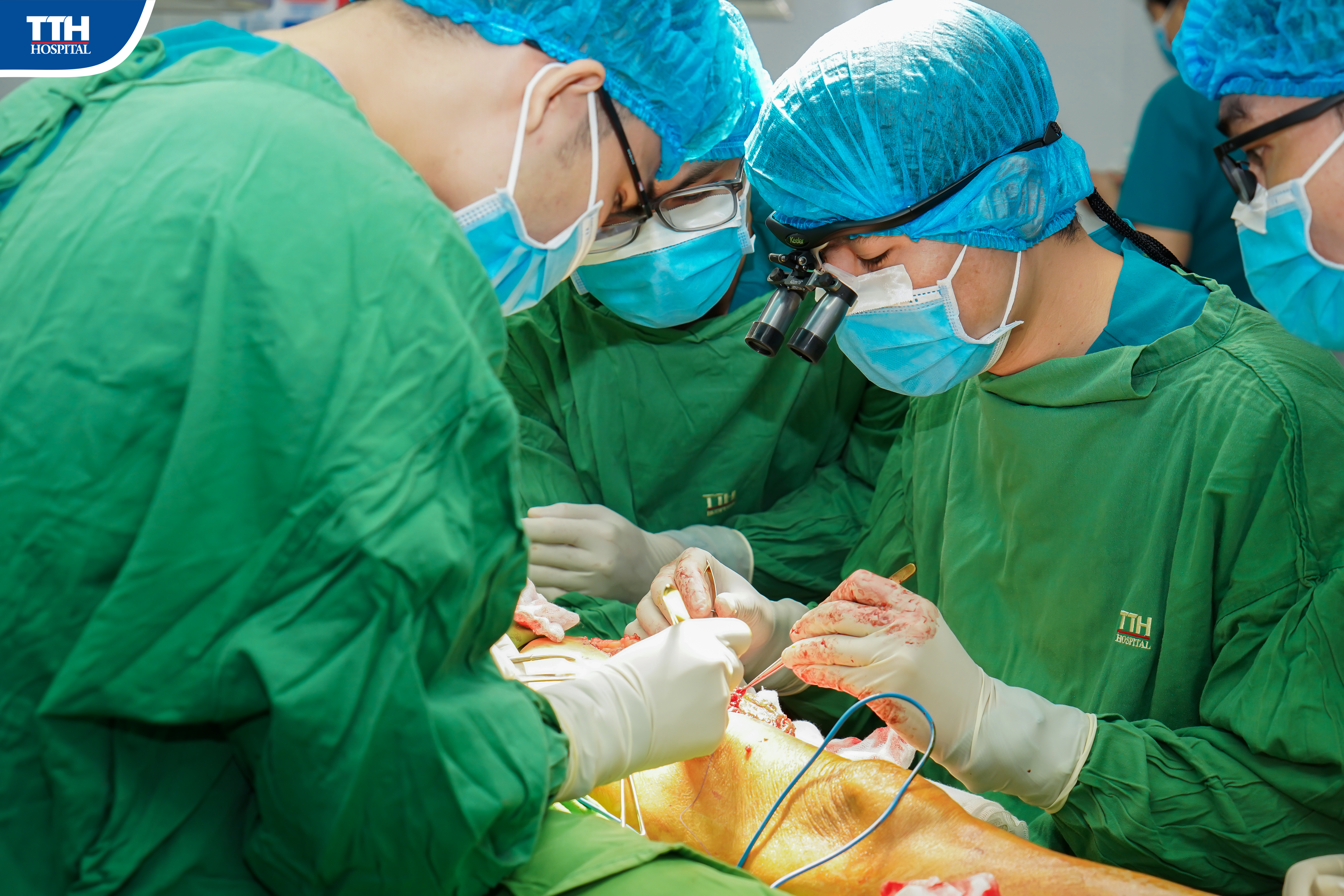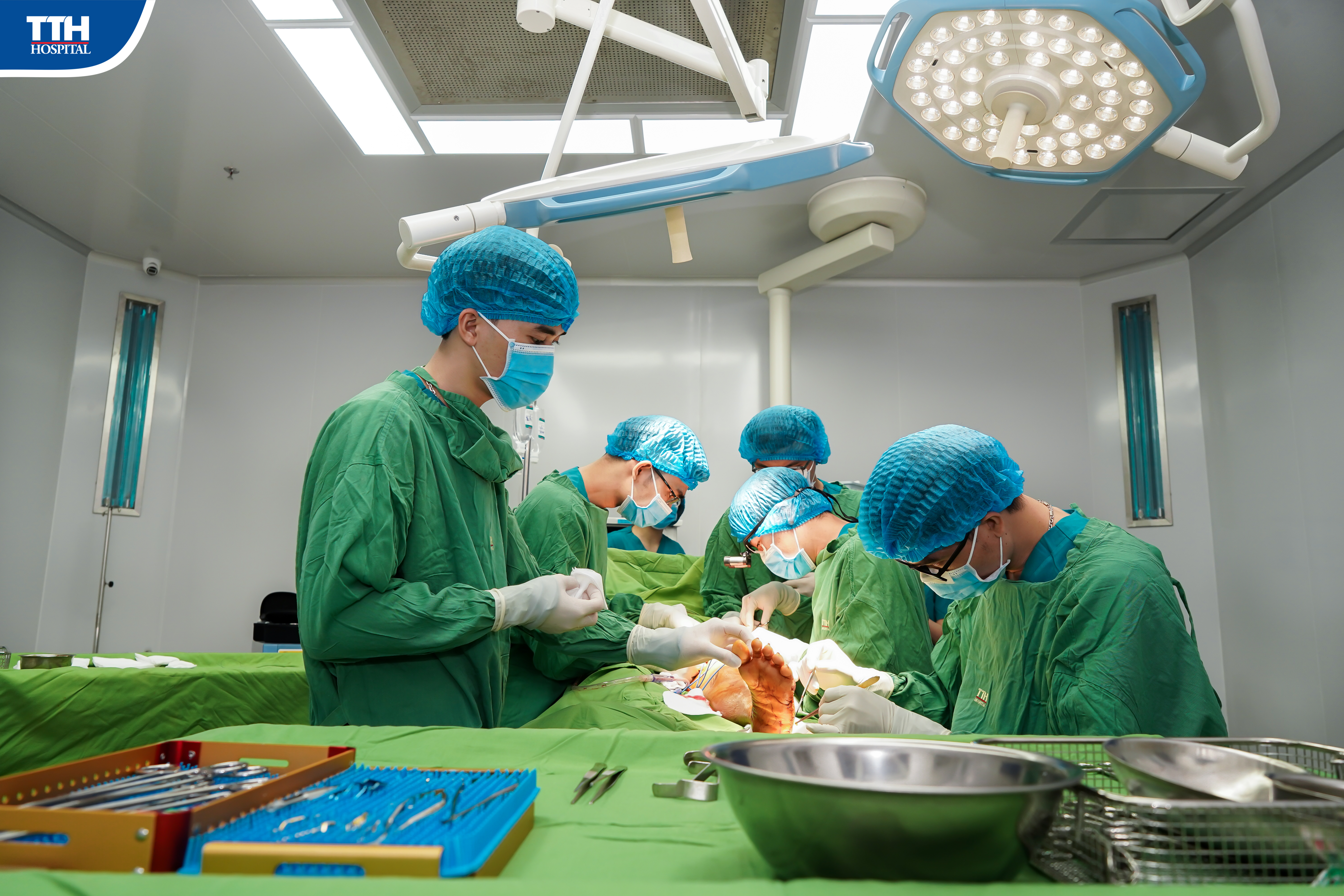 Phẫu thuật được thực hiện bởi 2 ekip chịu trách nhiệm chính. Cụ thể, một ekip sẽ bóc tách vạt da đùi trước ngoài (ALT) có cuống mạch máu rời, một ekip chuẩn bị nguồn mạch máu nhận ở mu bàn chân phải, sau đó sẽ khâu nối vạt da vào mạch nhận dưới kính hiển vi phẫu thuật. Sau hơn 6 giờ thực hiện, ca phẫu thuật hoàn thành, kiểm tra máu cấp tốt, vạt hồng ấm, che phủ hoàn toàn vết thương. Các bác sĩ theo dõi liên tục sau 7 ngày, bệnh nhân ổn định, vạt da sống tốt gần như hoàn toàn, vết thương khô sạch, bệnh nhân có thể vận động và đi lại nhẹ nhàng.