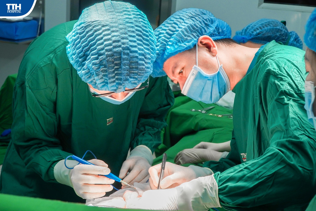 Ngày 21/10/2023, cụ T được phẫu thuật. Dù có nhiều thách thức đặt ra đối với ca mổ tuy nhiên với kỹ thuật ngoại khoa chuyên sâu của ekip phẫu thuật gồm Th.S BSNT Trần Viết Hùng, Phó Giám đốc chuyên môn kiêm trưởng khoa Ngoại Tổng hợp, BSCKI Lê Minh Tình phối hợp nhịp nhàng với ekip gây mê hồi sức nhiều kinh nghiệm, ca phẫu thuật đã diễn ra thành công. Bác sĩ đã cắt ⅔ dạ dày loại bỏ hoàn toàn tổn thương kèm nạo vét hạch D2 cho bệnh nhân.