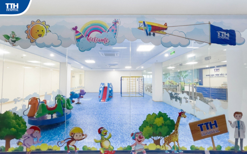 Phòng điều trị nội trú được thiết kế rộng rãi, đầy đủ tiện nghi, phòng ốc được khử khuẩn thường xuyên, giúp ba mẹ và trẻ có những trải nghiệm hoàn toàn thoải mái, giúp quá trình điều trị của trẻ nhanh phục hồi. Không gian điều trị nội trú được thiết kế thoáng đãng, sạch sẽ và trang trí bằng những hình ảnh vui nhộn, đầy màu sắc bủ khắp hành lang.